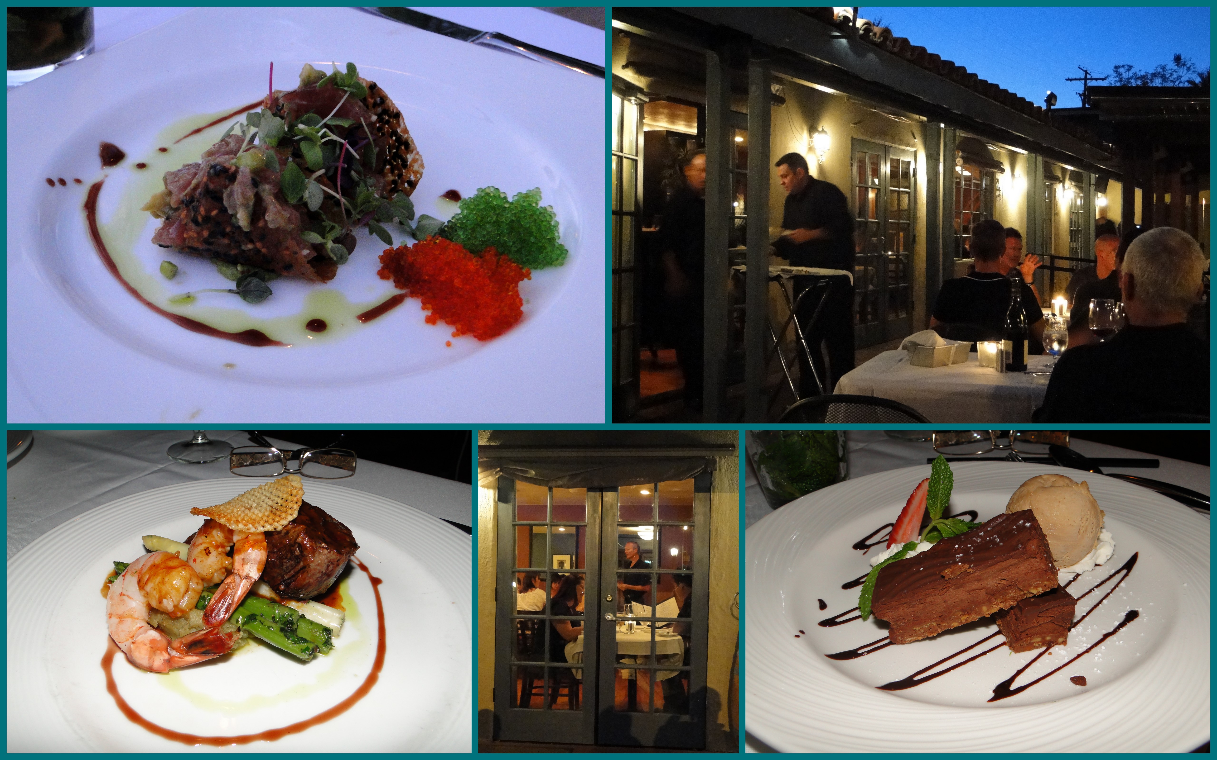The Palm Springs dining scene is eclectic but heavy on grilled meats, southwest and Mexican food. There are many decent restaurants, but only one outstanding establishment, Copley’s on Palm Canyon ( 621 North Palm Canyon Drive). It’s setting itself is historic, the restored 1930’s adobe-style home of Cary Grant. The huge interior courtyard garden provides excellent outdoor seating for pleasant evenings. The interior space has been opened up, decorated with warm colors and western art. The cuisine is excellent: mini-sushi tacos with red & green roe, butter-tender filet with spicy grilled shrimp, generous Neiman Ranch pork chop, rich chocolate pate with homemade mocha ice cream and lavender pound cake with homemade basil ice cream. Arrive before sunset and watch as the desert’s dusky sunlight plays with the mountains and the blue/black night emerges punctuated by candle light.