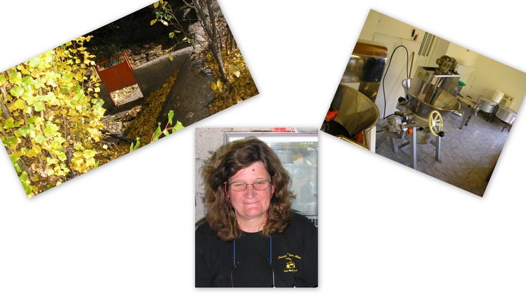 In garden-like arrangements, Dona Malu showed me orchards of apple, cherry, apricot, figs, raspberries, strawberries, as well as Andean varieties that are cousins of these soft berries, quince, Andean melons, sweet and hot peppers, almond, hazelnut, rose hip, rosemary, basil, wormwood (the herb basic to vermouth), oregano, edible flowers, the plots for tomatoes, spinach, eggplant, onions, garlic and other vegetables, lavender, asparagus, anise, horseradish, grapes, fava beans, and thyme. All the plots are protected from any harsh winter winds by towering alumina trees, cousins to the poplar. Dona Malu cooks and jars her creations in a small, pristine kitchen with modern commercial equipment and showed me a new, larger kitchen facility under construction.