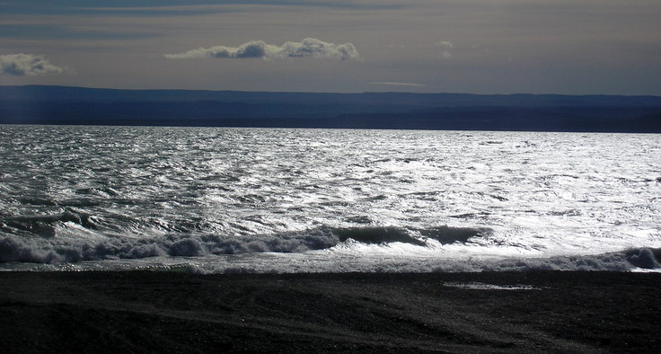 I am on the shore of Lago Buenos Aires, in front of a crackling fire on a beautiful autumn evening (late April) in Los Antiguos. At a southern latitude equal to Quebec City (Canada) in North America, it is 70 degrees one month into Argentina’s autumn, but the fire feels nice now that a breeze off the lake chills the air. After a 13-hour bus ride from El Chalten on Argentina’s legendary (mostly unpaved) Ruta 40, through the near-desert steppe of Patagonia, entering this oasis of alumina trees (cousin to poplar), cone laden pines and the startling blue of Lago Buenos Aires is surprising. It doesn’t matter what you read, reality is always more intense.