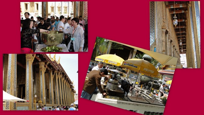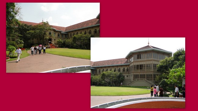 Unlike so many mansions, this was a home. It’s flooded with light and well ventilated with intricate wooden lace work topping all walls allowing air to freely circulate. It serves as a museum today for the royal collection of period furnishings and for both official and private functions of the Royal family. Currently, it is now part of the extensive private compound of the Royal family including the Royal Elephant Museum and the Dusit Zoo. Admission to the Palace is included in the ticket for the Grand Palace and is valid for a visit within 7 days of the ticket’s purchase. One hour guided tours are conducted and, wearing no shoes, the silk-smooth teak floors feel wonderful on your feet.