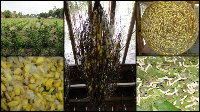 silk pictures Cambodia Thursday, 5 May 2011 640 × 360 Silk – Thread of Empire Silk: (top left) Mulberry Trees, (bottom left) silk cacoons, (center) cacoons on bundles of sticks and (top right) circular basket, (bottom right) silk worms munching on Mulberry leaves