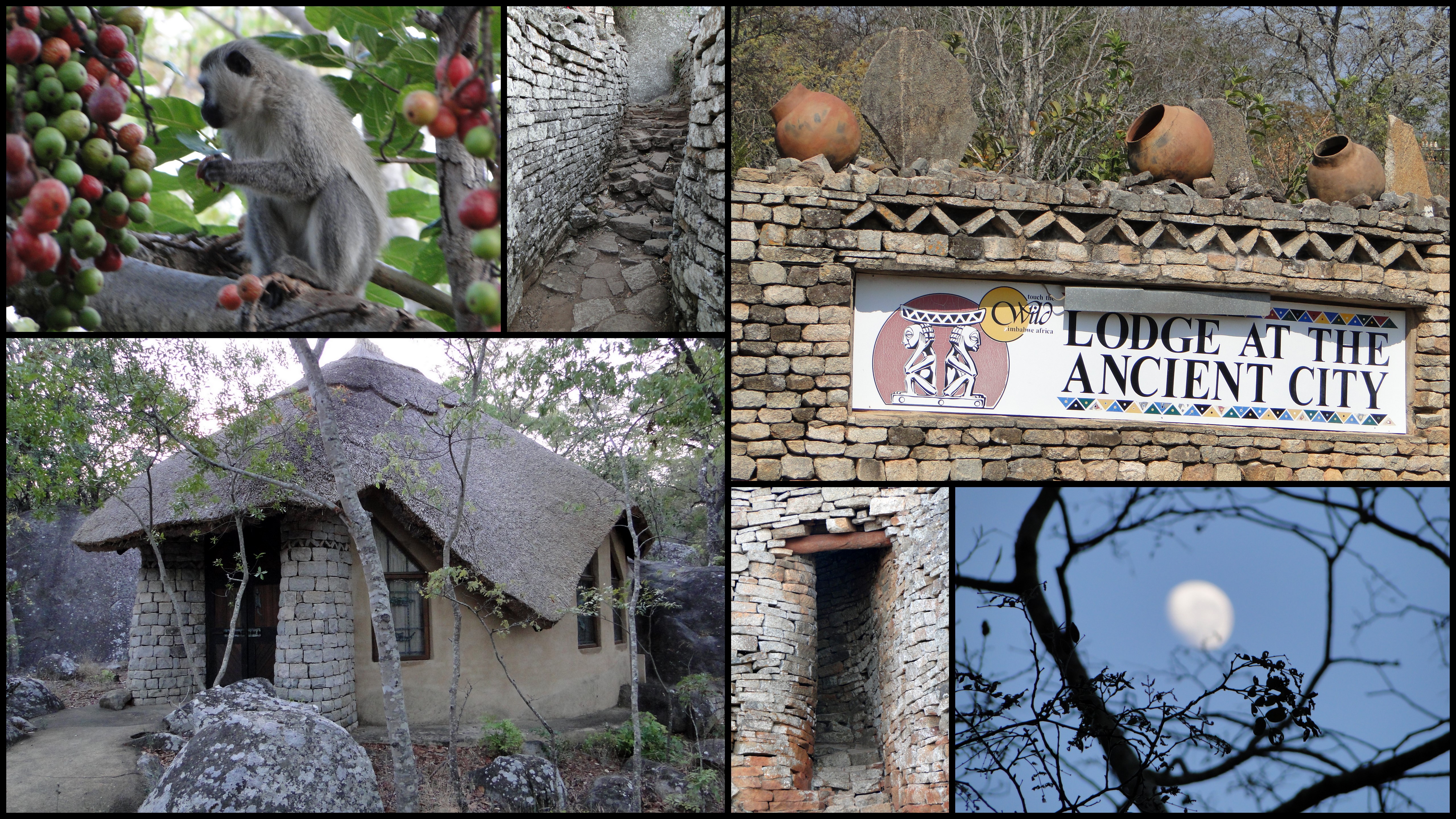 Zimbabwe Monkeys and drive to Bulawayo Oct 2011 Thursday, 29 December 2011 5120 × 2880 Zimbabwe’s Inns and Lodges in the National Parks (top & bottom center) stairway & doorway at Great Zimbabwe, (lower left) a room at Lodge at the Ancient City