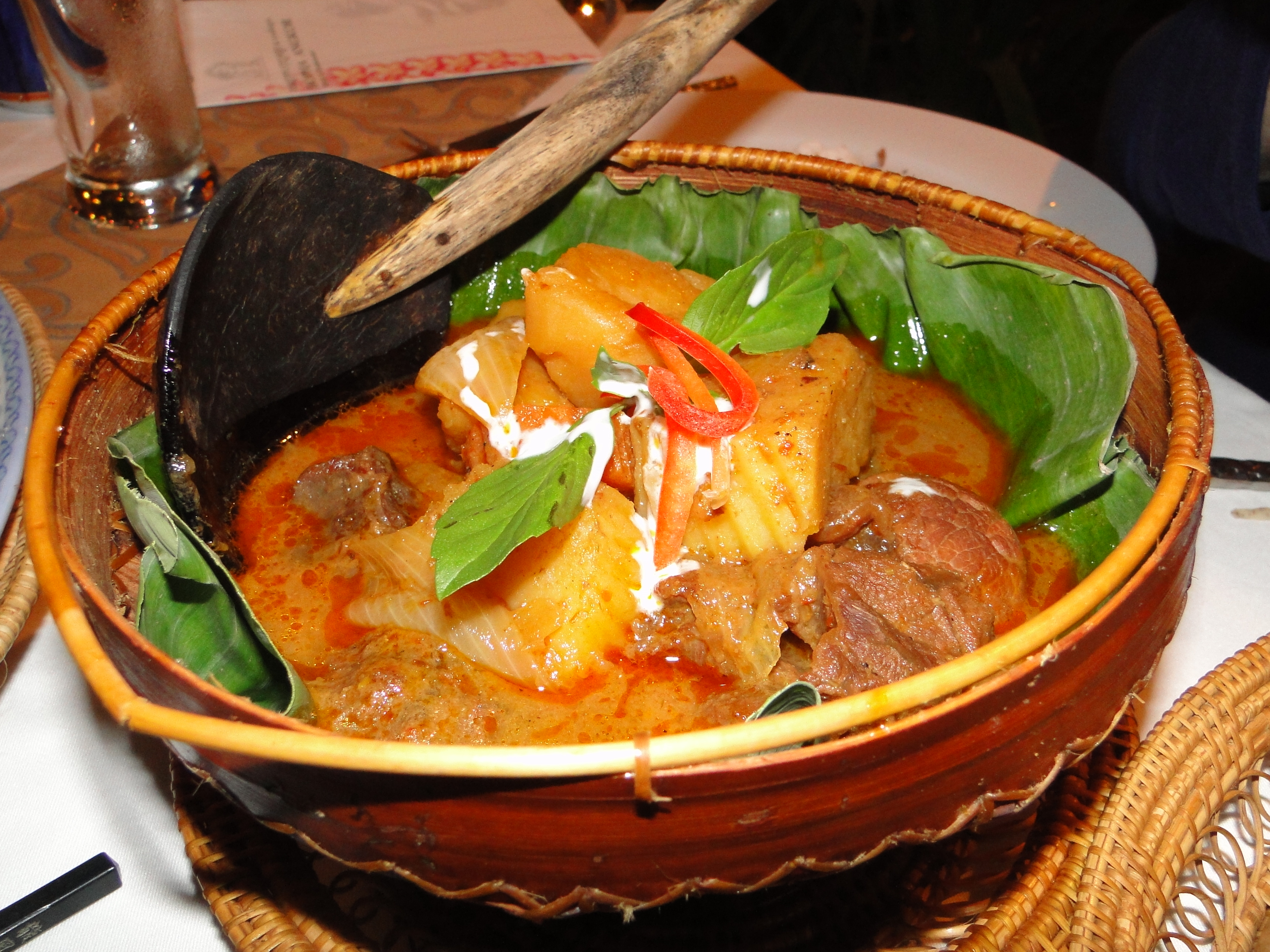 DSC05864 Tuesday, 20 March 2012 3456 × 2592 New Southeast Asian Cuisine: from Galangal to Philly Cheese Steak at Bopha, Siem Reap, Cambodia:traditional meat stew