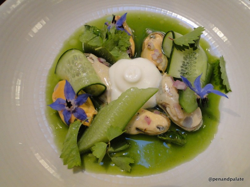 mussels with cucumber, eggplant sauce and sour cream foam Monday, 13 August 2012 1100 × 825 Four Days in Flanders mussels with cucumber, eggplant sauce and sour cream foam