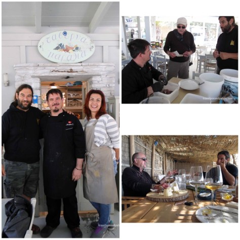 Chef Marinos wanted me to sample Marathia’s specialties from the a la carte menu. They are all meze, small plates that together with bread, salad and cheese frequently define a Greek meal. All were traditional centuries old preparations of local ingredients when preservation drove recipes. The dishes using riki, sardines, grazos and fish row are all uncooked salt cured.