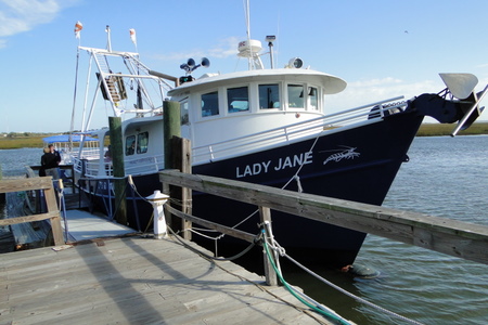 It’s a brilliant sunny day off the southern Georgia coast as the Lady Jane moves slowly through the channel. The islands of St. Simons and Jekyll rise above a sea of salt grass. Laughing seagulls – their actual name – swoop through the air behind the ship. “That’s a good sign,” comments Cliff Credle, “They know where the food is.”