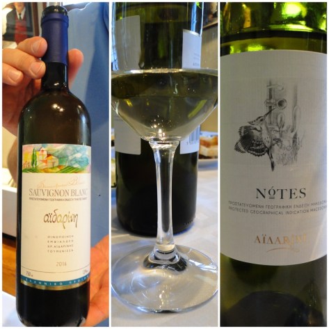 Sauvignon Blanc – most exported to Germany – had aromas of walking through fresh fields of summer wild flowers. On the palate it was semi-dry with notes of lemon zest, fresh green grapes, white raisins. The finish is nice and dry in the throat. At Aidarini they served it to me with an interesting pairing of green olives sprinkled with orange zest.