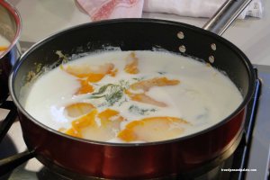 Warm the milk, remove from heat and add the yeast.