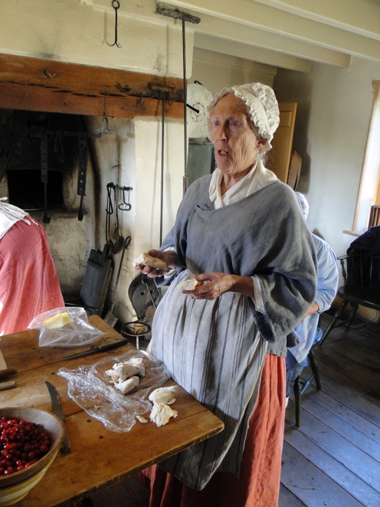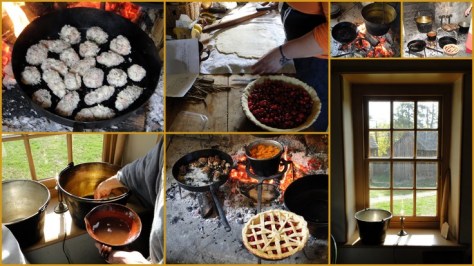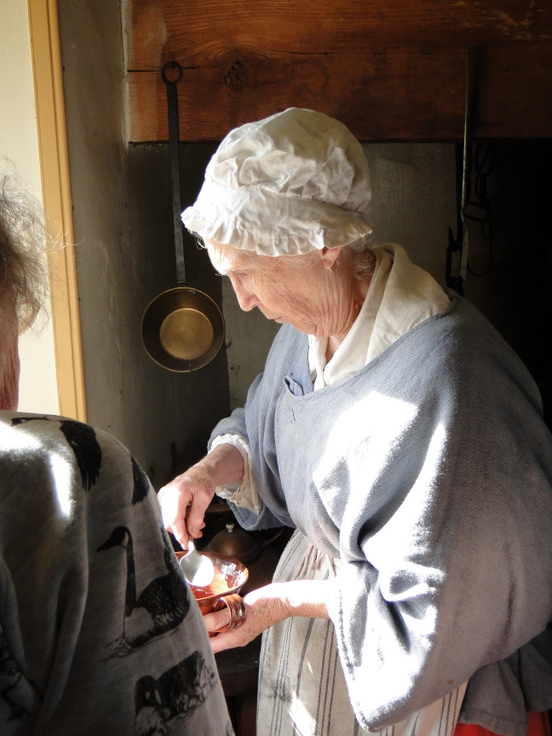 On this Saturday morning we are learning about, and preparing, an autumn dinner on an open hearth using 18th century utensils with vegetables and herbs from the Massey House garden.