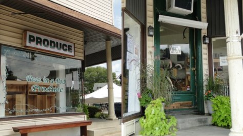 I entered the small shop at the intersection of Keswick and Glenside Avenues in Glenside, PA – a leafy, older suburb a mere 10 miles from center city Philadelphia – through a plant framed door that sticks and agitates an old-fashioned bell announcing a customer. Peas In A Pod is in a typical nondescript twin house converted into mixed commercial/apartment space. Out in front of the shop is a covered stand with produce available on the honor system. Inside, Kristen was at the counter and Susan, with helper, niece Mary Kate, were in the kitchen. (Karen had the day off). Frequent customers, of which there are many, are greeted by name; perhaps they have a quart of soup reserved. Customers, now friends by association, linger and chat. The interior space of the shop is small, simple and functional.