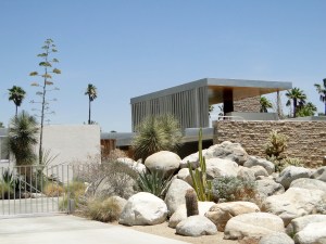 For forty-years, from the late 1940’s through the late 1980’s, Palm Springs became a mecca for low-rise houses. The clean lines and generous use of glass, rock and steel blurred the line between interior and exterior space. Landscape design centered on the use of the great variety of sustainable native plant life in this oasis softening the house into the land. This blurring of in and out provided a natural privacy for interior courtyards and pools. Vast lawns of the type found in Las Vegas are rare. The exception to water excess are the unnatural, but welcome, abundance of swimming pools.