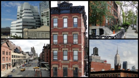 from the Hi-Line:(upper left) ultra modern meets (center) early 19th C. (lower left) commercial meets (upper right) early 19th century brownstone (lower left) the Empire State