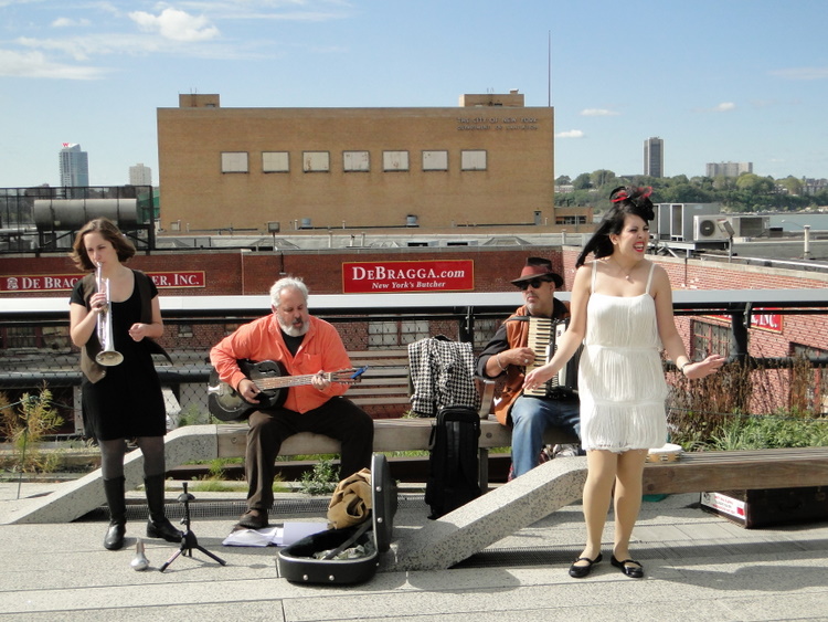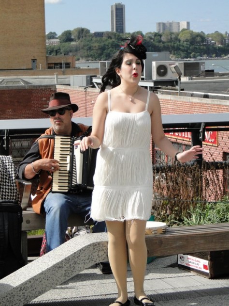 Even if you just need to walk the ten blocks from Gansevoort Street on 10th Avenue in Chelsea up to 20th Street, then why not use the Hi-Line rather than street level. You might even meet up with a …oh wait…that was the 1960’s. This doll’s a great 1930’s jazz singer, on the Hi-Line.