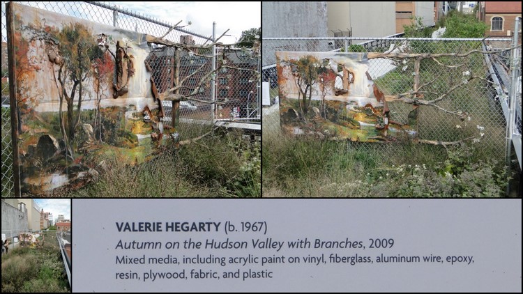 Valerie Hegarty’s art installation actually hangs on the fence that separates Section One from continuing construction on the remainder of the park. A stroll on a pleasant autumn weekend afternoon was relaxing and stimulating in only a way great urban centers create. Yet where Central Park hides the visitor from the city, the High-Line provides a panoramic view.