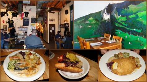 On our first visit to Lederhosen we were with an Austrian friend who was impressed with the quality of this everyday German pub faire. In the picture above the three dishes are from left: Boneless Herring Fillets with a choice of sauces ($10), Currywurst grilled beef sausage ($5.00) and Wiener Schnitzel ($17) Ah yes, those are lederhosen hanging from the ceiling (top left). The restaurant has three small rooms that fill quickly for lunch and dinner. Reservations are not accepted except for special occasions, but waiting times are typically not long, and you can always have a beer while you stand in the social bar entrance area.
