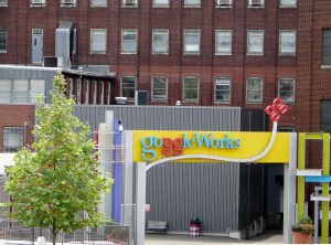 From the gazebos that sits on a rocky promontory outside the museum there’s a nice view of the Waterworks and Boathouse Row.