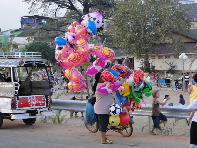 Inexpensive restaurants abound and spill onto the streets. Lunch or dinner for 2 will rarely cost more than US$15 – unless you stuff yourself. A large 3/4 litre bottle of Beer Lao – a pleasant lager – costs $1.25. A few outstanding restaurants exist. The best being La Silapa, owned and operated by a French Canadian with a menu that is an excellent fusion of French and Lao flavors. Lunch for two is less than $30. (Note: wines are expensive anywhere in Southeast Asia. Costs are frequently more than the entire meal.) Nos serves excellent sushi at prices that make a Westerner believe they were in a Sushi nirvana – about $.25/each with salad and miso soup. There are a number of pizza restaurants using wood fired brick ovens and make terrific paper thin crusts. For genuine Lao cuisine eat on the street. Look for the most popular, crowded street restaurants. The rapid turnover means the food is fresh and has not lingered in the heat – what, no ice to keep the food fresh? Get real – I’ve yet to get even the slighest stomach problem.