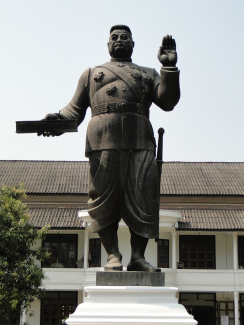 On the South Korean financed and constructed 2.5 mile long Mekong River Promenade/flood control wall (completion by 2013) stands the largest political monument in Laos – a Pathet Lao leader? A vitriolic monument to Western imperialism? No…it’s a memorial to an early 19th century national hero, the martyred PrinceAnouvong (KingChaiya Sethathirath V: 1767 – 1829)last ruler of the Kingdoms of Vientiane and Lan Xang. He led a failed war against their enemy, Siam (the Kingdom of Thailand) who had occupied Vientiane, and he died in captivity.