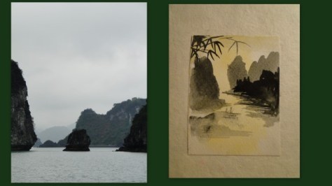 (left) Halong Bay, (right) watercolor in the Shui-mo style