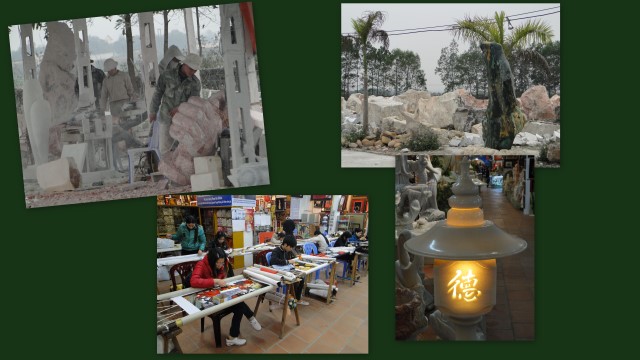 Of course, the bus does make a shopping stop at a stone carving studio. Vietnam has an abundance of both limestone and marble. Hand-made marble carvings, especially garden fountains and statues, in sizes that are quite large, are available and shipping can be arranged – don’t look for bargains, these are top-of-the-line. Silk embroidery – some of it quite fine – is an art that frequently employs the disabled and is widely available, as well as jewelry and women’s ready-to-wear clothing – as long as you’re a size 8 or less.